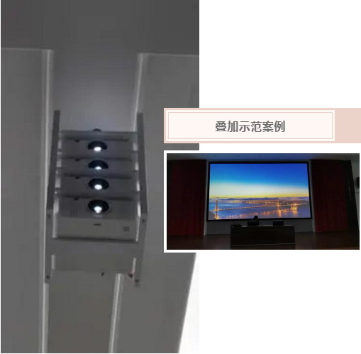 疊加是投影機(jī)工程應(yīng)用中最常見的方案之一,通過兩臺或多臺亮度較低的投影機(jī)疊加投影,獲得更高亮的投影顯示效果,該方案較單臺高亮投影有更高的性價比,施工簡單,在疊加方案應(yīng)用上,我們和大家分享如下使用技巧和注意事項。