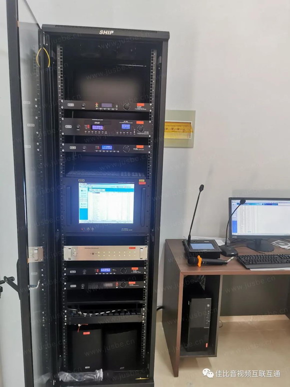廣播控制室,用于負責對整個廣播系統的集中運行管理。學校管理員在系統主服務器上可對其自動編程設置,實現無人值守,能夠自動定時定點播放相關音源。配置的IP網絡觸摸尋呼對講主控臺,可實現對整個學校做到全區、分區控制管理,單獨尋呼講話,操作非常靈便。