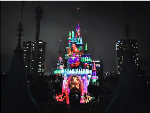 “我們很高興能利用科視全新的技術(shù)在魔法城堡的外立面上展現(xiàn)一場美輪美奐的 3D 多媒體投影秀。這是一場迷人的夜間展示,用樂天世界中引人入勝的元素點亮了這個標志性建筑。令人驕傲的是樂天世界已成為全球首個采用 Mystique 自動校準解決方案進行室外 3D 投影映射的主題公園。”