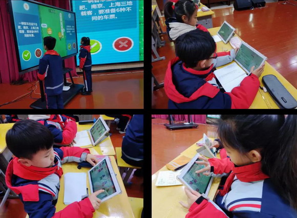 阜陽(yáng)市實(shí)驗(yàn)小學(xué)北校區(qū)孫婷婷老師、曹婷婷老師、張齊老師分別帶來(lái)了三年級(jí)數(shù)學(xué)、英語(yǔ)、語(yǔ)文三節(jié)課例。數(shù)學(xué)老師使用判斷題,通過(guò)系統(tǒng)的數(shù)據(jù)分析直觀展示學(xué)生的作答情況;語(yǔ)文老師使用課件推送功能將重要知識(shí)點(diǎn)推送至每位學(xué)生的平板上,方便學(xué)生加深理解;英語(yǔ)老師使用拍照上傳以及學(xué)生互評(píng),讓學(xué)生來(lái)當(dāng)小評(píng)委,課堂參與性大大提升。