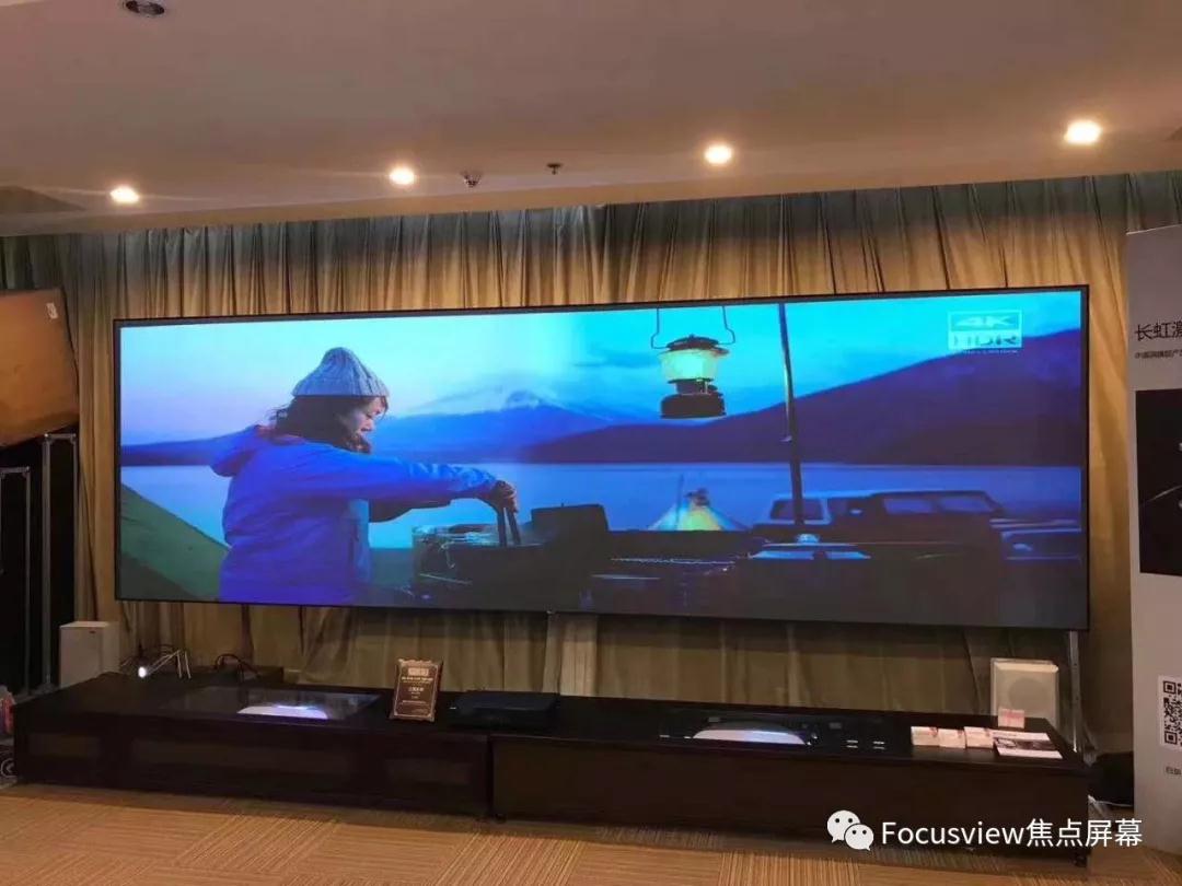▲焦點6*1.8米現場組裝拼接屏搭配兩臺海信激光T60大屏融合