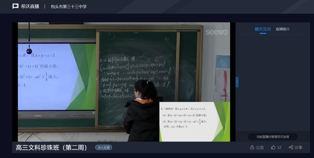據(jù)悉,在此之前,三十三中已利用希沃常態(tài)化錄播對于高三學(xué)生進(jìn)行了線上直播開課,同時(shí)學(xué)生們也可以通過在線回放的形式重溫知識(shí)。學(xué)校通過一系列的措施,降低疫情對高三學(xué)生的影響。