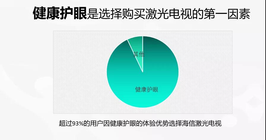 激光電視“健康護眼”的特點和優勢,在市場上,在消費者中,也已經形成了強大共識。一份用戶調研數據顯示,超過93%的用戶因健康護眼的體驗優勢選擇激光電視。