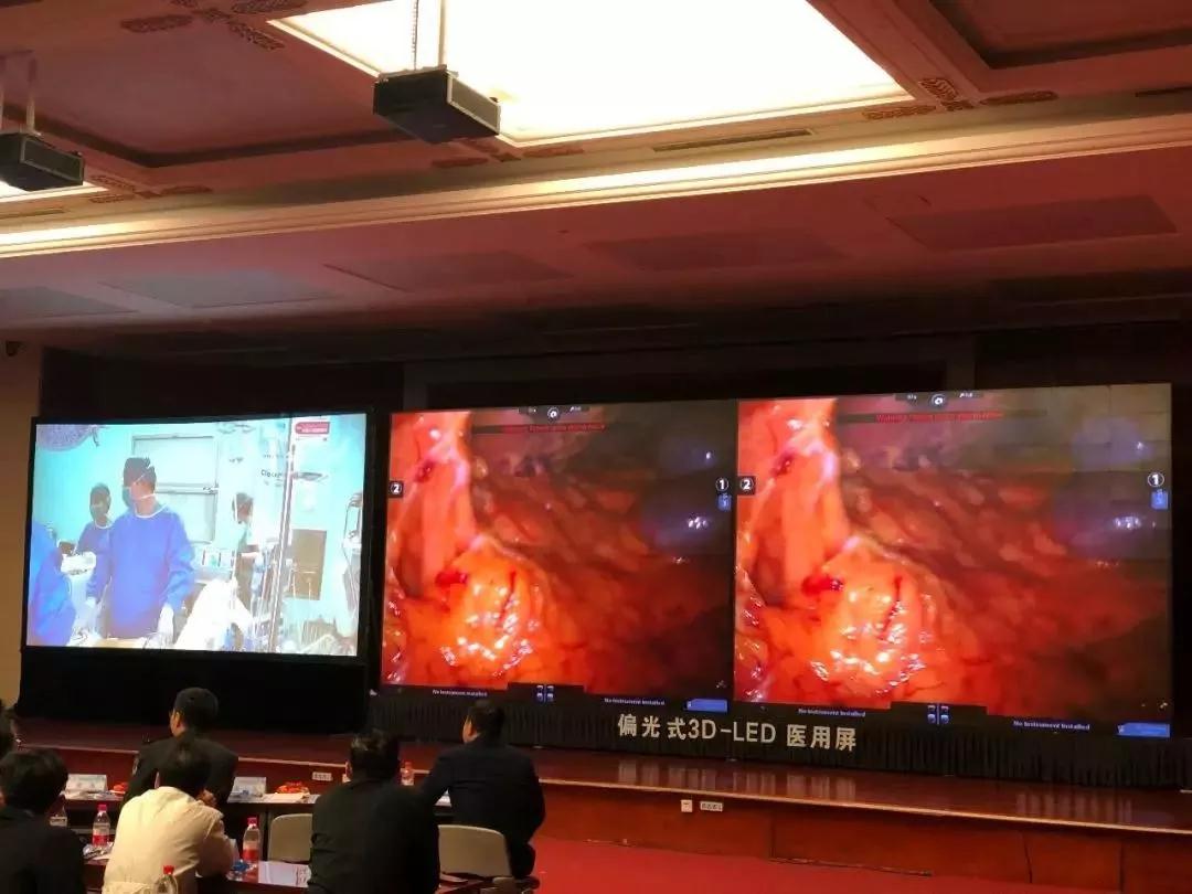 在2019年舉辦的第二十屆北京國際肝膽胰外科論壇暨解放軍總醫院第一醫學中心肝膽胰外科周上,大會首次應用洲明UTV-3D醫學屏幕進行了機器人3D手術直播和3D腹腔鏡手術直播。洲明UTV-3D醫用屏以國內領先的偏光式3D-LED技術,憑借畫質逼真、色域超廣、10Bit位深、亮度高(傳統投影設備的10倍)、無閃爍、無眩暈、健康護眼等突出性能,為現場觀眾清晰展示了當前肝膽胰外科最前沿的手術技術與醫師們精湛的手術技巧。