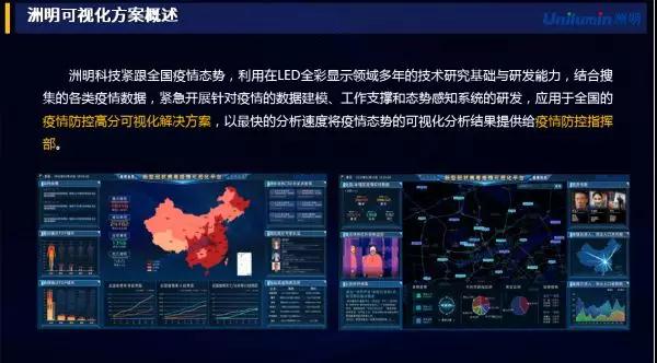 最新消息顯示,洲明還特別針對新型冠狀病毒推出可視化解決方案,希望以最快的速度將疫情態勢的可視化分析結果提供給疫情防控指揮部,以幫助提高疫情防控質量和效率。