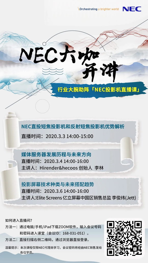 NEC投影機(jī)直播課再度來襲!行業(yè)大腕傾情助陣~