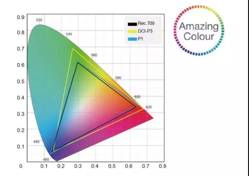 DCI-P3色域是美國電影行業推出的一種廣色域標準,是目前數字電影回放設備的色彩標準之一。如果顯示器能夠覆蓋DCI-P3色域,那么它就會更加接近影院放映的實際效果,較真實地呈現電影中所要呈現的所有色彩。奧圖碼激光電視P1-GW就廣泛覆蓋了DCI-P3色域,能夠帶來更加接近影院標準的畫面。