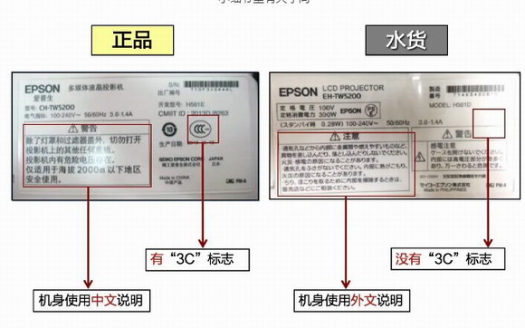 愛普生正品投影機的機身有“3C”標志