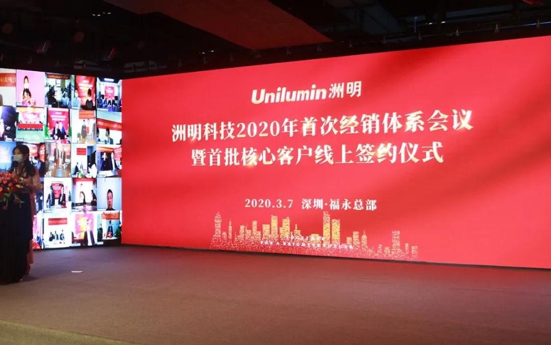 2020年3月7日,洲明科技召開了別開生面的2020年首次經銷體系會議暨首批核心客戶線上簽約儀式。