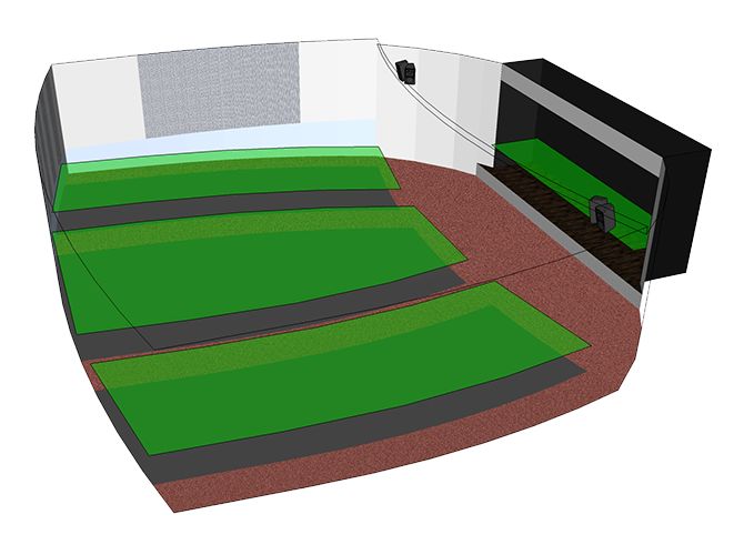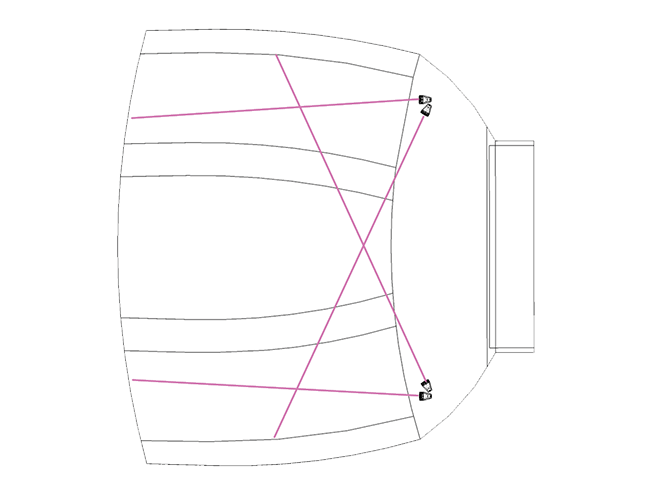 鏡像的兩組揚聲器陣列覆蓋了整個空間,提供了“立體聲”的聲場還原。每組都由兩只2分頻揚聲器組成,以實現最佳覆蓋。同時還提供出備用中置陣列的設備建議,以使中置陣列從中心懸掛位置覆蓋整個觀眾區域。