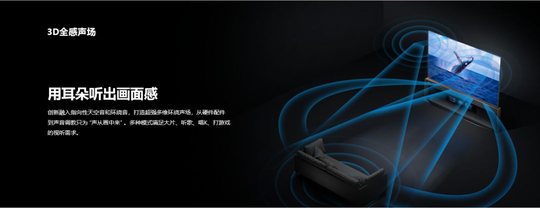 如果說畫質是眼睛的享受,那么音質就是耳朵的享受,想要成為一臺好的“藝術品”,兩者的打磨,缺一不可。為此,海信8K Pro雙屏電視U9內置了可以媲美專業發燒級音響配置的3D全感聲場。8聲道、14個揚聲器,腔體容積達到了6.8升,輸出功率高達110瓦,營造出音畫合一的沉浸式體驗。