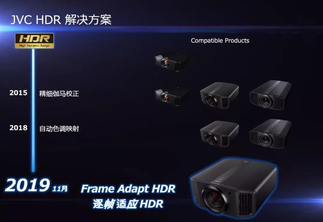 JVC 剛剛發布的 “逐幀適應HDR”(Frame Adapt HDR) 全新功能(LEO系列固件升級),自動分析4K HDR電影每幀畫面的亮度,自動匹配每幀畫面的HDR圖像參數,可以兼容所有HDR10內容。“逐幀適應HDR”實現了4K HDR“畫質”和”易用性”的革命性升級,讓“LEO”(獅子座)系列N11/N8/N6如虎添翼。目前“逐幀適應HDR”(Frame Adapt HDR)已經口碑爆棚,被稱為“4K HDR神器”!