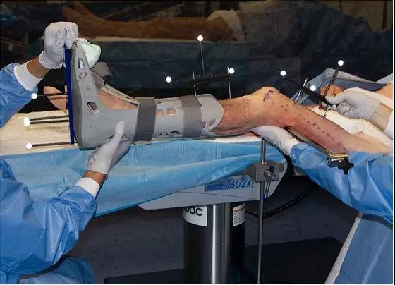 在國外一項關于《機器人輔助骨科手術的實時關節運動分析和儀器跟蹤》的報告中顯示,在過去的二十年中,機器人輔助手術已成為手術室的全球標準。但是,機器人輔助骨科手術需要精確,自動的腿部操縱,以提高空間準確性,減少醫源性損害。研究報告提出了新穎的剛體設計和光學跟蹤體積設置,用于跟蹤股骨,脛骨和手術器械。使用計算機斷層攝影術測量腿內部的解剖點,精度為0.3mm。結合運動學建模,可以相對于任何框架和跨關節表達這些點,以達到亞毫米級的精度。同時,還可以在股骨和脛骨的機械軸上設置矢量,以進行運動學分析。