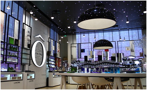 所以專業的品牌門店陳列設計師,常會根據商品的不同屬性、顏色、特點分別陳列,以聚成一定的色彩形象,達到最大化吸引消費者注意的目的;或者根據補色和對比色原理,讓消費者“選少購奇”,這樣很容易吸引消費者的注意,在感性環境下產生購買欲。舉個例子,蘭蔻旗艦店使用明基BenQ商業顯示屏拼接貼合于墻壁,商顯屏顯色能力佳,又能隨季節活動變換主題色,與店內貨架商品陳列相融相襯,蘭蔻旗艦店的風格一下子從一眾美妝品牌旗艦店中脫穎而出。