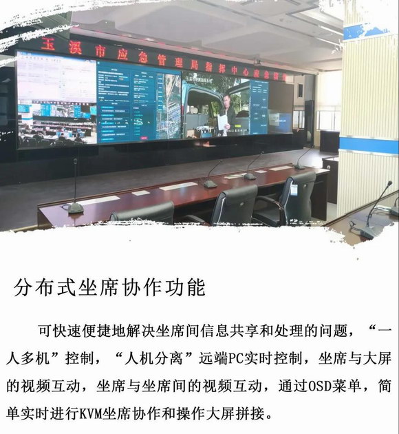 此次玉溪市應(yīng)急管理局應(yīng)急指揮中心建設(shè),CHARTU長圖運用CHARTU品牌產(chǎn)品搭建分布式系統(tǒng),具備大屏拼接、坐席管理、畫面預(yù)監(jiān)回顯等功能,接入、整合已有資源,充分使用及調(diào)配資源從而做出科學(xué)決策。