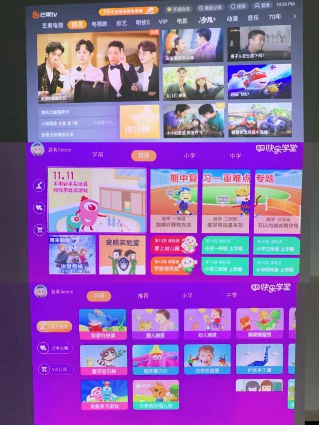 它可以投射出80至100英寸大畫面,且內置豐富動畫資源,《小豬佩奇》《開心娜娜》《猜猜我有多愛你》等動畫片應有盡有,對孩子來說,簡直就是一座流連忘返的寶庫。