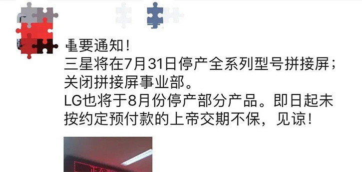 前段時間,一條關于三星即將停產(chǎn)液晶拼接屏的消息傳遍了顯示行業(yè)人士的朋友圈。
