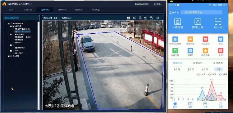 在江蘇鎮江蘇寧廣場,通過大華視頻AI技術,做到了實時監測疏散通道、消防車通道和消防登高面,并在占道行為發生時即刻報警,通知相關人員到場處理,大大改善了轄區消防“生命通道”的安全現狀。