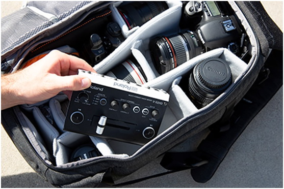 邏蘭V-1HD便攜式高清切換臺 — 產品支持HDMI信號 4入2出,可接收來自攝像機、智能手機、電腦、視頻播放器等視頻源設備,支持隔行掃描與逐行掃描信號輸入,精確顯示從PC輸入信號以及由HDCP設備輸入的受版權保護的視頻源。產品支持9種濾鏡效果,自帶混響功能與主音量調整功能,最終的調音效果與視頻一同嵌入HDMI輸出,支持專業級視頻混合效果如畫中畫、摳像、旋轉、綠屏等。