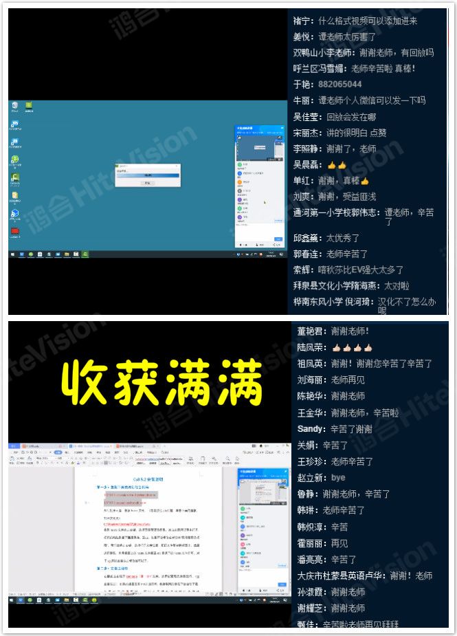 直播課結(jié)束后,鴻合有幸采訪了大慶市擁軍第一小學(xué)譚玲老師,譚老師表示:“這次線上培訓(xùn)的參會(huì)人數(shù),還有課堂的順利開(kāi)播都超出了我的預(yù)期,感慨互聯(lián)網(wǎng)的強(qiáng)大,感謝鴻合科技給予大力支持,鴻合直播互動(dòng)課堂讓老師們跨越了時(shí)空相遇相知,共同學(xué)習(xí)進(jìn)步!