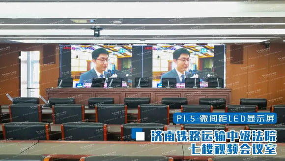 濟南市鐵路運輸中級法院視頻會議室應(yīng)用Voury卓華P1.5微間距LED顯示屏拼接而成,Voury卓華微間距大屏幕系統(tǒng)將本地會場圖像和遠程會場畫面進行清晰的畫面還原,并結(jié)合大屏幕拼接圖像處理技術(shù)融合技術(shù),使會議雙方與會者感覺如在同一會議室,實現(xiàn)了高臨場感的遠程會議體驗,滿足政企日常會議,實現(xiàn)及時溝通、高效運作。
