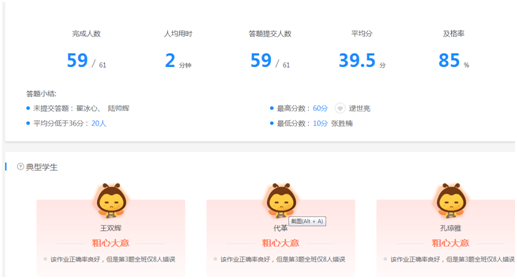 “教師能夠在學情反饋中看到每個學生完成作業(yè)詳細情況,對于學生完成作業(yè)的用時快慢,掌握知識的情況等數據情況能夠一目了然,很大的減輕了老師的工作任務。”作為英語老師的師老師同樣感受到作業(yè)報告功能對她教學的幫助。