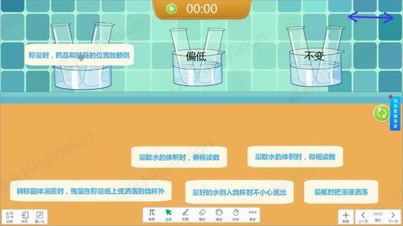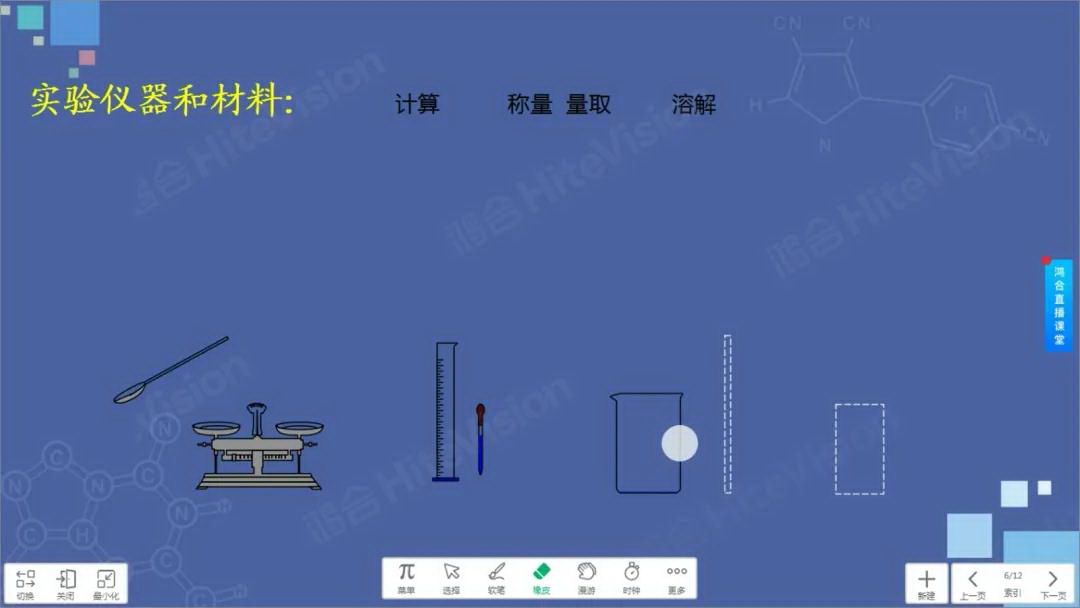 作為化學老師,駱老師通過鴻合直播互動平臺上了一節《溶液的配置》基礎實驗課,課程將鴻合π交互教學軟件應用到化學課教學中,為屏幕前的老師們展示了在教學過程中如果可以多借助一些教學軟件或工具,對提高我們的課堂教學效果會很有幫助。
