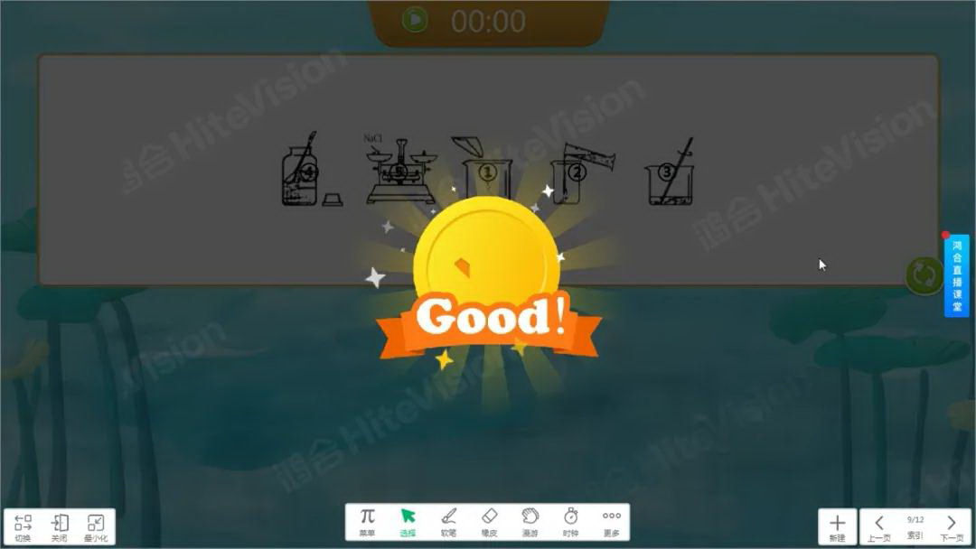 課堂檢測環節,駱老師利用白板軟件中的分類達人游戲,在玩游戲的同時測試學生對實驗操作步驟的掌握情況。鴻合白板軟件中內置豐富的課堂活動,老師只需要幾分鐘簡單操作,就可以把枯燥的知識點設置成互動游戲,玩得同時增強學生對知識點的鞏固。