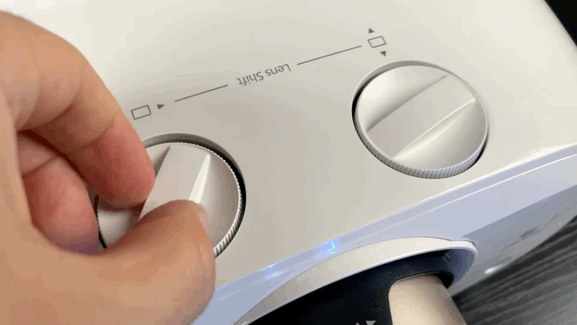 連上電源線,輕觸開機,我們先變焦和聚焦,隨后,旋轉鏡頭頂部的兩個位移旋鈕,屏幕可以向上下左右位移,不挪動投影機就可以調整畫面,居家安裝時很方便。愛普生投影機的主界面有常用功能的快捷按鈕,用戶操作起來比較直觀。功能界面很豐富,用戶可以詳細調整很多參數。