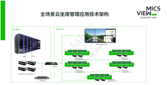 依托企業內網,通過端節點將后臺信號與CollabStation云坐席連接,實現每一個席位都具備對后臺的控制。同時它也可以與MICS云打通,享受MICS云服務。這種架構具備拓展性,適應所有以坐席為主的應用場景。