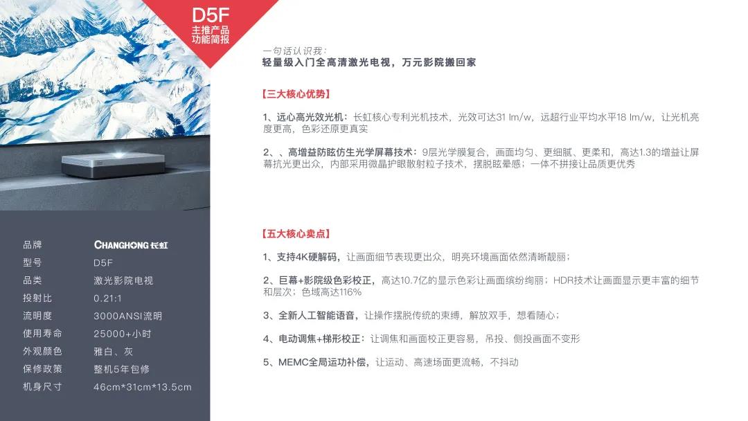 長虹的激光,從投射比、質保期、光源壽命,再到投射的距離都是有優勢的。