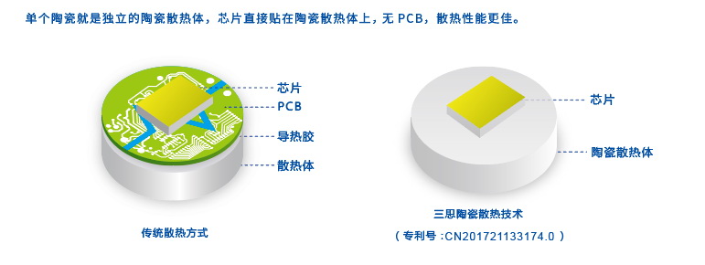 具有核心專利技術陶瓷散熱,散熱更好、光效更高、光衰更低;