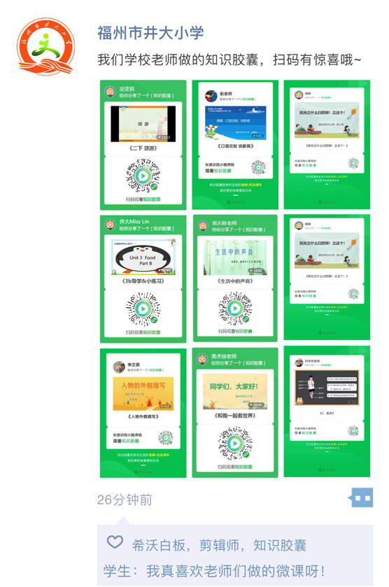 為切實做好疫情防控,有效減少人員聚集,確保新學期教學工作的穩步開展,福州市井大小學積極響應教育部“停課不停學”的號召,與希沃培訓團隊共同開啟線上訓練營。在疫情期間,在指導學生們居家學習和發展的同時,井大小學的老師們從未停下自身在專業成長和學習提升路上的腳步,不斷地進行專業技能的培訓。