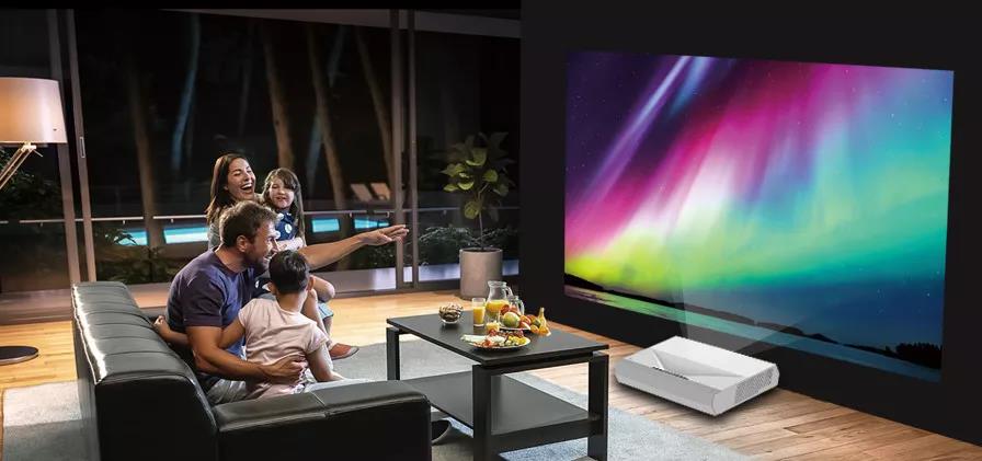 相比之下,激光電視的安裝無疑更加友好:激光電視主機體積不會太大,不用擔心運輸問題;抗光幕也可以選擇軟木、畫框幕,這種非常易于運輸的產品。
