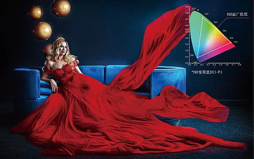 N8采用紅藍雙色激光光源,相比傳統(tǒng)的藍色單色激光,增加了紅色激光,有效改善藍色激光色域不足,提升紅色光占比達到22%。在家庭影院中,N8能幫助用戶還原更多色彩細節(jié),能夠輕松實現(xiàn)DCI-P3 100%,讓畫面表現(xiàn)更精彩飽滿。