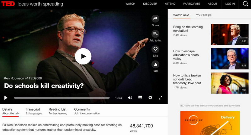 我的另一位超級偶像英國作家根·魯濱遜爵士,在14年前發表了一個叫做Do Schools Kill Creativity?(學校抹殺了孩子的創造性嗎)的演講。演講引發來自世界各地6000多萬人觀看,被翻譯成62種不同的語言。另外,聽過我講座的朋友都聽過一個視頻《我把學校告上法庭》,一個叫做Prince Ea的人把學校告上法庭。想要了解去學校化社會的觀點,推薦老師們先看看這些作品和視頻。