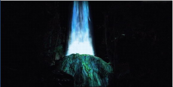 在水流強勁落下的瀑布上展現花朵從誕生、生長、結出花朵、開花到不久后的凋零、枯萎。通過水的動感與燈光的結合展現出生命的變化與炫彩之光。