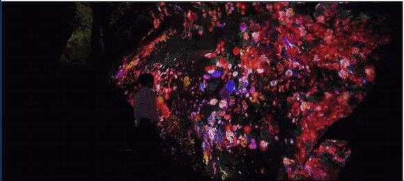 在白日里并不起眼的巨石,到了夜晚變得繽紛奪目,花朵永遠的重復著盛開然后散落的過程。