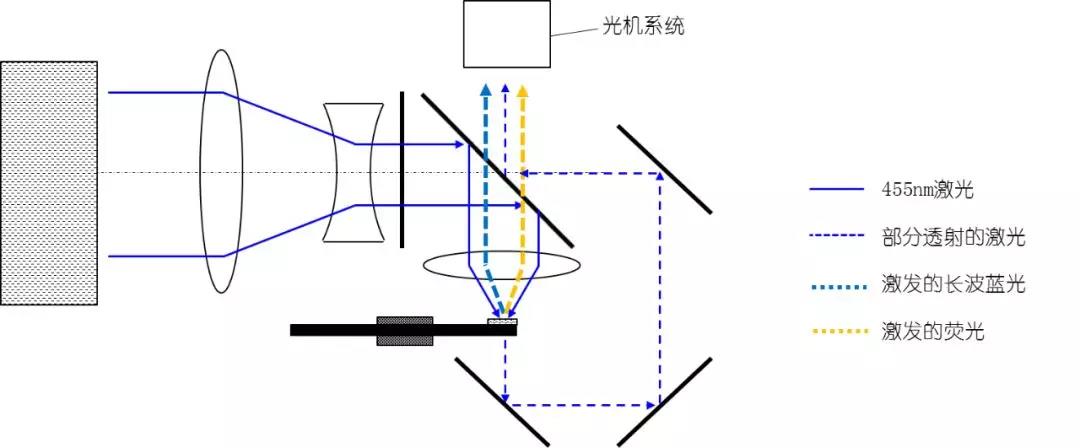 雙藍光激光熒光光源技術(shù)光路示意圖