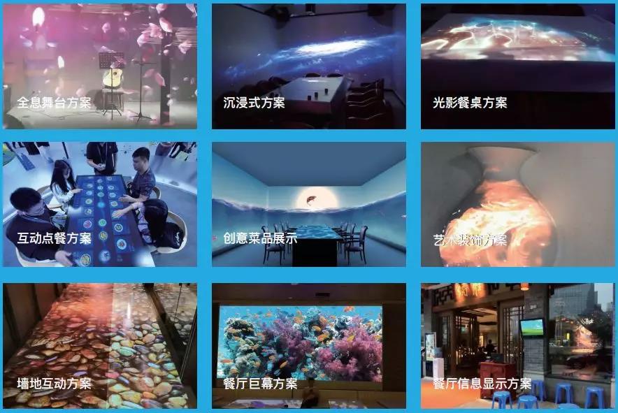 迪恒投影為客戶打造了多種光影餐廳解決方案,用投影方式展現,使用動畫、聲音,為客戶營造了一個真實的環境,把所需的場景逼真地呈現出來。在為餐廳帶來了更加豐富的收益同時,不僅可以明顯增加店內的回頭客數量,更重要的一點在于客戶的用餐體驗和餐廳的環境有了很大的提升。作為食客既能夠享受到味蕾上的誘惑,還可以感受到就餐環境上的新奇,這樣一種一舉兩得的應用形式,的確是最佳選擇。