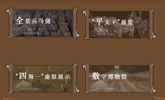 秦始皇帝陵博物院在官方網(wǎng)站推出“數(shù)字展示”欄目,包含“全景兵馬俑”“平天下展覽”“四海一虛擬展示”“數(shù)字博物館”四大板塊。