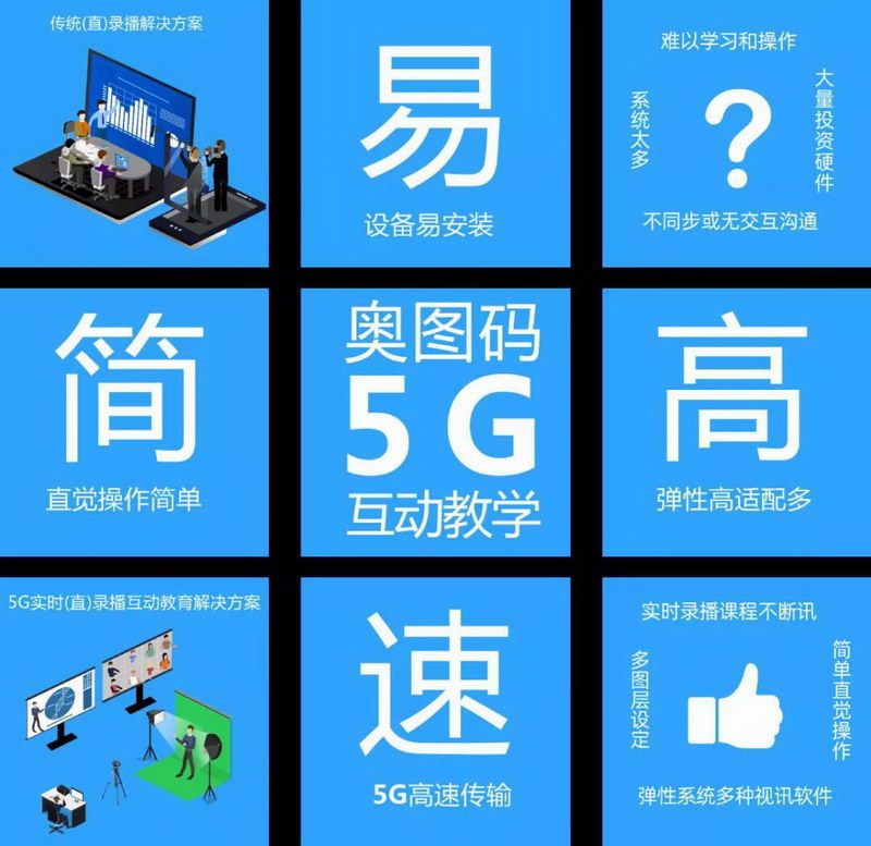 針對以上痛點,奧圖碼帶來了全新的5G互動教學解決方案。奧圖碼5G互動教學解決方案是針對高端細分市場的混合遠程學習方案,結合了軟硬件解決方案的優點,具有遠程傳輸、高彈性、高擴充性、高穩定度、易操作等特點。