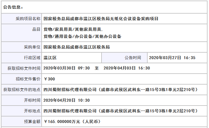 國家稅務(wù)總局成都市溫江區(qū)稅務(wù)局無紙化會(huì)議設(shè)備采購項(xiàng)目公開招標(biāo)公告