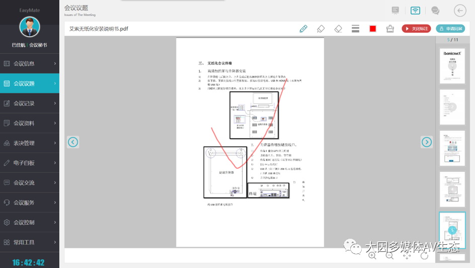 可對Word、PPT、Excel、PDF等格式會議文件進行頁面高清處理,終端無須預裝相關應用軟件,支持文件快速瀏覽導航、翻頁、放大、縮小、拖動、旋轉、矢量化批注、同屏和上屏功能。