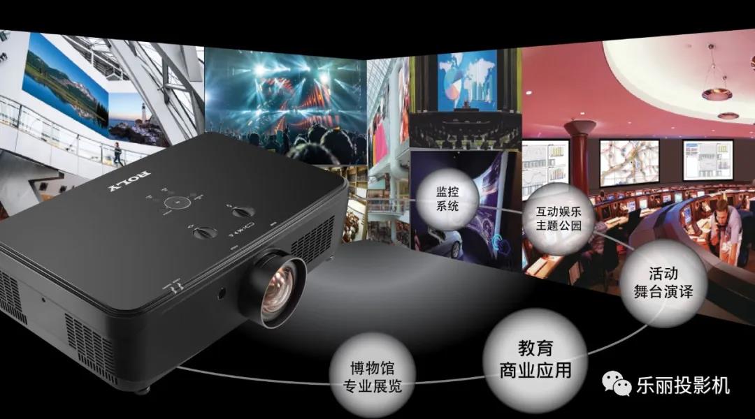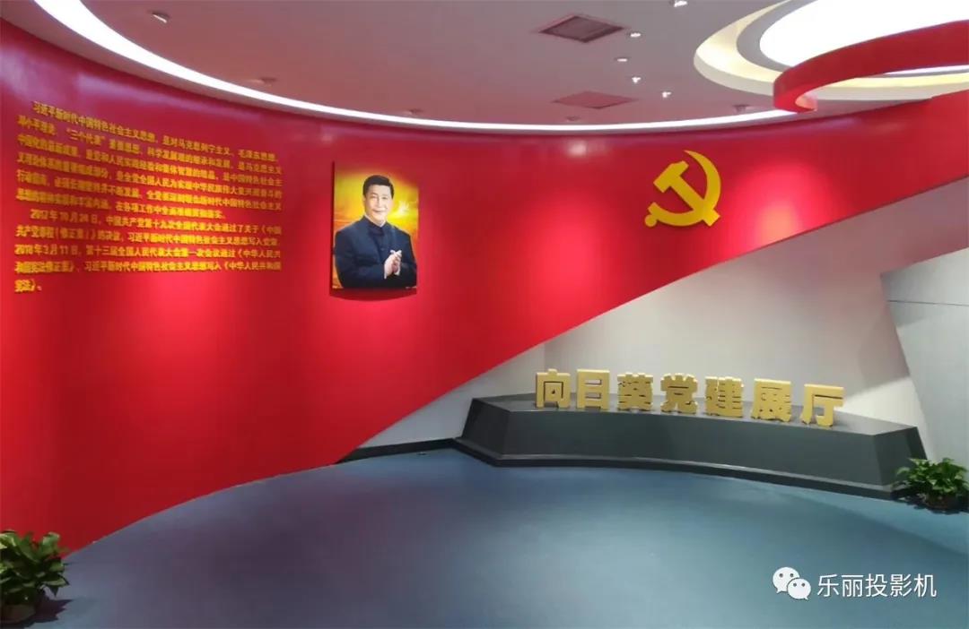 向日葵黨建展廳主要運用了聲、光、電等多種現代科技方式來進行一個黨的宣傳及教育。其中展廳共使用了8臺ROLY RL-6200WT短焦激光工程投影機,其中5臺投影機利用融合技術,將所有投影畫面融合成一個環形大畫面,營造一個沉浸式的空間感,畫面不間斷。該系列工程投影機具有6200流明高亮度,高分辨率(1280*800),高對比度3500000:1,擁有高通光率,高解析度的日本原裝高性能短焦變焦鏡頭,1.2倍變焦比,可360°自由靈活安裝,經濟模式下可使用25000小時,讓投影機更能省能耗更耐用,加上ROLY全封閉結構設計,防塵特性大幅度提高,降低了用戶后期維護成本。