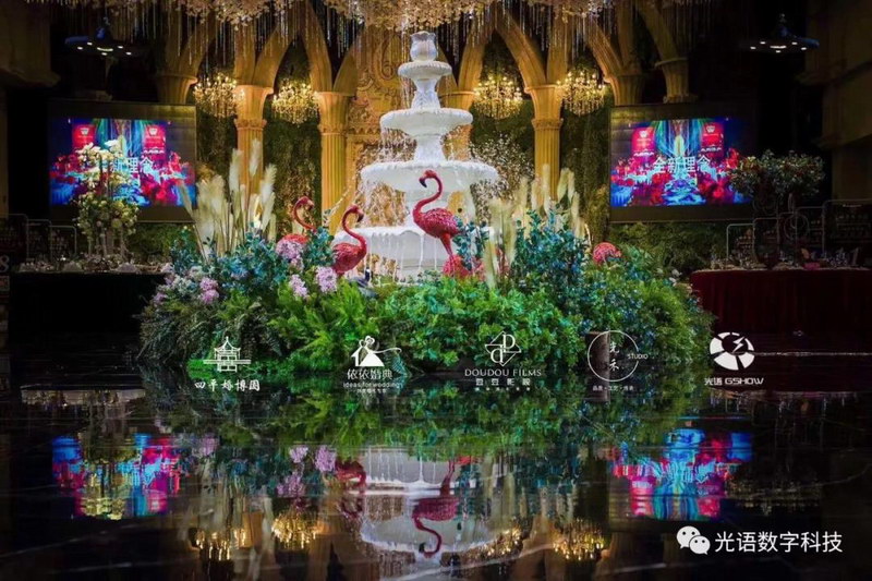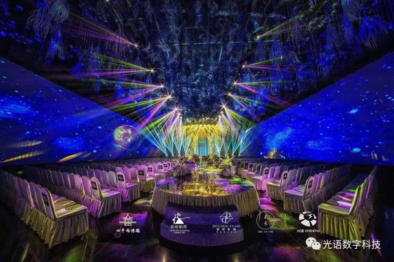 四平婚博園重磅打造的5D全息婚宴,由深圳光語(yǔ)數(shù)字全程策劃設(shè)計(jì)與安裝調(diào)試,現(xiàn)場(chǎng)采用光語(yǔ)GSHOW專業(yè)級(jí)舞臺(tái)燈光音響設(shè)備,使宴會(huì)廳呈現(xiàn)出劇場(chǎng)現(xiàn)般的完美音視,讓場(chǎng)面更加震撼,讓感受更加身臨其境!