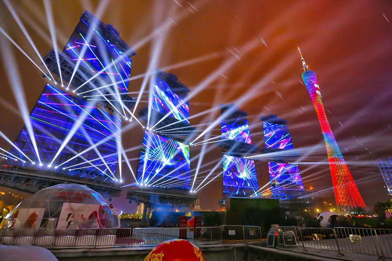 這八面LED格柵屏幕組成的“亞洲風帆”,已然成為廣州地標性建筑,用來宣揚嶺南文化。4350平米的LED帆屏,可滿足露天電影劇場、常態大型文藝演出、戶外大屏廣告播放的需要,豐富市民和游客的業余文化生活,打造粵港澳大灣區音樂文化高地。