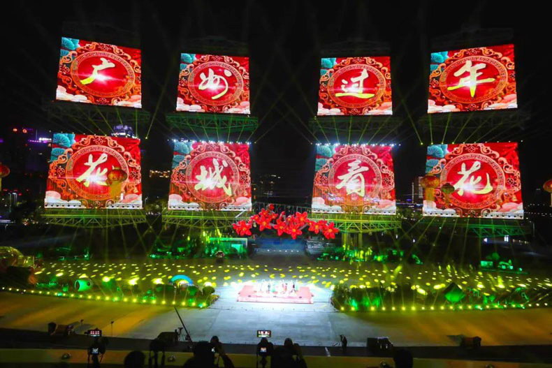由利亞德智慧顯示·4530平米LED格柵屏,升級改造的海心沙4座8面可折疊升降式帆屏,震撼亮相,為廣州再添一張亮眼城市名片。