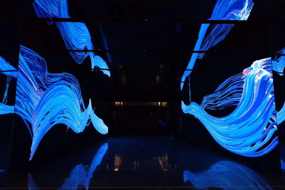 步入營銷中心大門,整體空間營造出很明亮、通透的感覺,由聯建光電承制的兩塊高清小間距LED大屏映入眼簾,大屏幕絢麗的顯示效果與人機互聯體感設備相結合,讓人仿佛置身于時空隧道中,來訪者可以通過全息投影進行立體空間互動體驗,從而充分了解復星國際品牌背景,大大提升了營銷中心的整體品牌形象,新穎流暢的互動體驗也讓營銷效果顯著提高。
