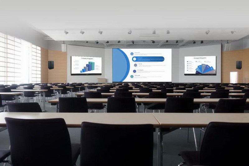 在傳統的會議市場,企業一直以來用的比較多的投影機和LCD液晶顯示屏,但是投影機對室內環境和光線要求比較高,容易造成小黑屋,會議會顯得比較壓抑,而液晶顯示屏也僅局限于100英寸以下市場。